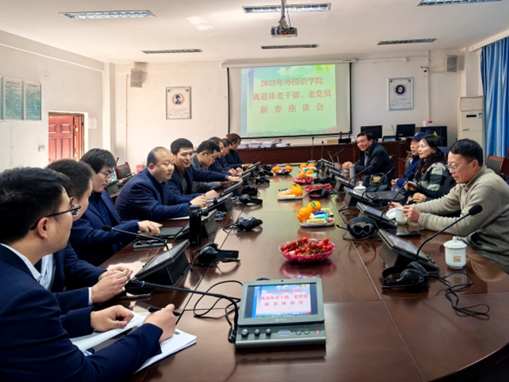 1月17日下午,外国语学院在明德楼三楼会议室为离退休老干部、老党员举办了迎新春座谈会。这次活动有6位离退休老干部、老党员参加。校工会、离退休处副处长谢萍,院党委书记付乔、副院长高朝阳(主持工作)、党委副书记、纪委书记张健、副院长李翔、分工会主席马东、党政办公室主任隆涛及部分青年教师代表出席了座谈会。座谈会由付乔主持。