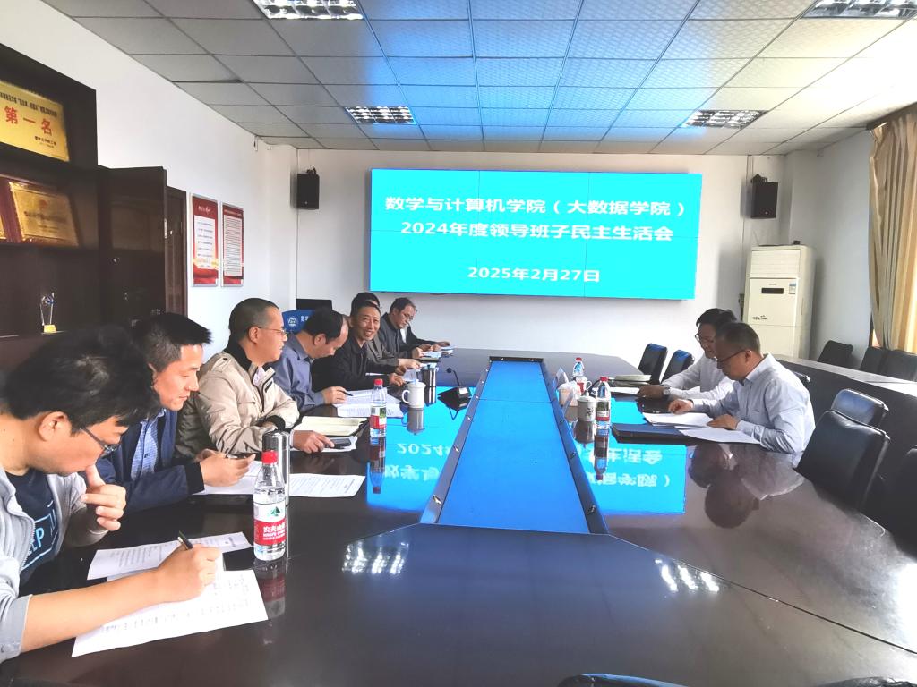 2月27日下午,数计学院在砺志楼403会议室召开了2024年度领导干部民主生活会暨巡察反馈专题民主生活会。学校党委副书记、校长李兴贵及党政办相关负责人到会指导,学院党委书记王明辉主持。学院领导班子全体成员参加会议,党委委员、纪委委员、各党支部书记、各科室负责人、分团委书记、分工会主席及各教研室主任等列席会议。