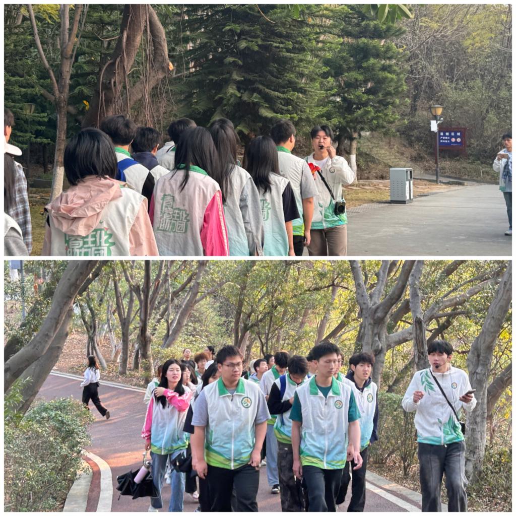“攀枝花,也被称为木棉花或英雄花……攀枝花炒腊肉还是餐桌上的一道美食”,学院“共富青春 生‘话’科普”志愿讲解员刘翔同学,仔细向大家科普攀枝花树的知识,从静明湖步入攀枝花公园。