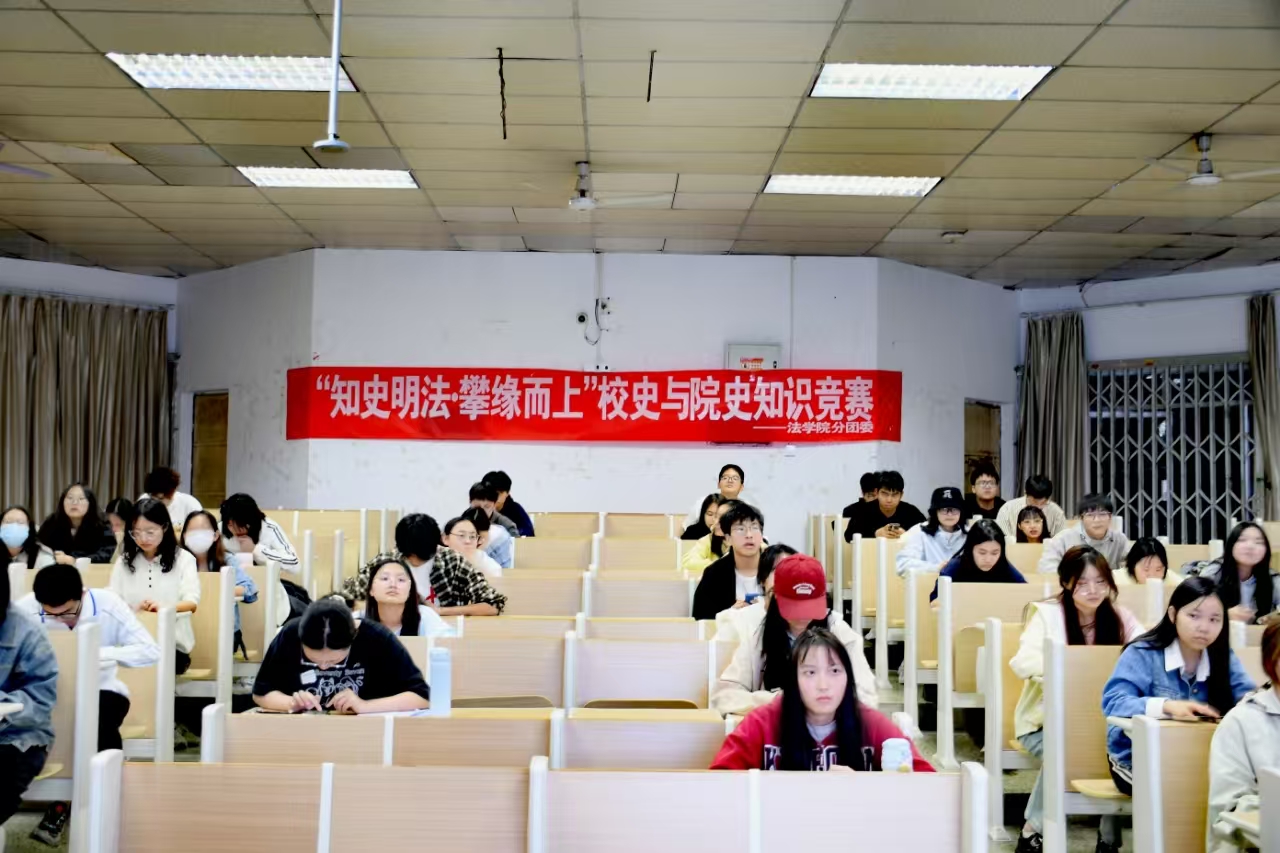 为进一步规范大学生行为规范,全面推进学风建设,助力学校本科教育教学审核评估工作3月16日晚,法学院在1-101成功举办“知史明法 攀缘而上”大学生应知应会知识竞赛决赛。本次活动紧密围绕学校本科教育教学审核评估要求,通过以赛促学形式全面提升学生综合素质,法学院分团委书记刘沙出席了本次活动。