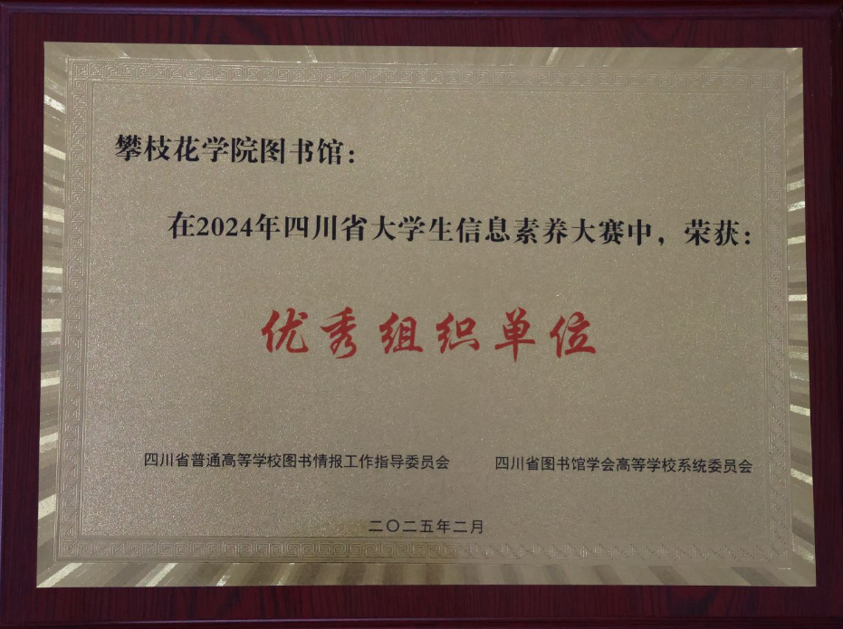 近日,由四川省高校图工委主办的2024年四川省大学生信息素养大赛圆满落幕。我校参赛队伍荣获三等奖1项、优秀奖1项,图书馆荣获优秀组织奖。其中,23级临床医学专业本科2班吕玉坤、21级临床医学专业本科2班陶银、21级临床医学专业本科1班杨靖蕾荣获三等奖,23级法学专业本科2班艾佳蕾和王婷、22级英语专业本科2班谢源荣获优秀奖。