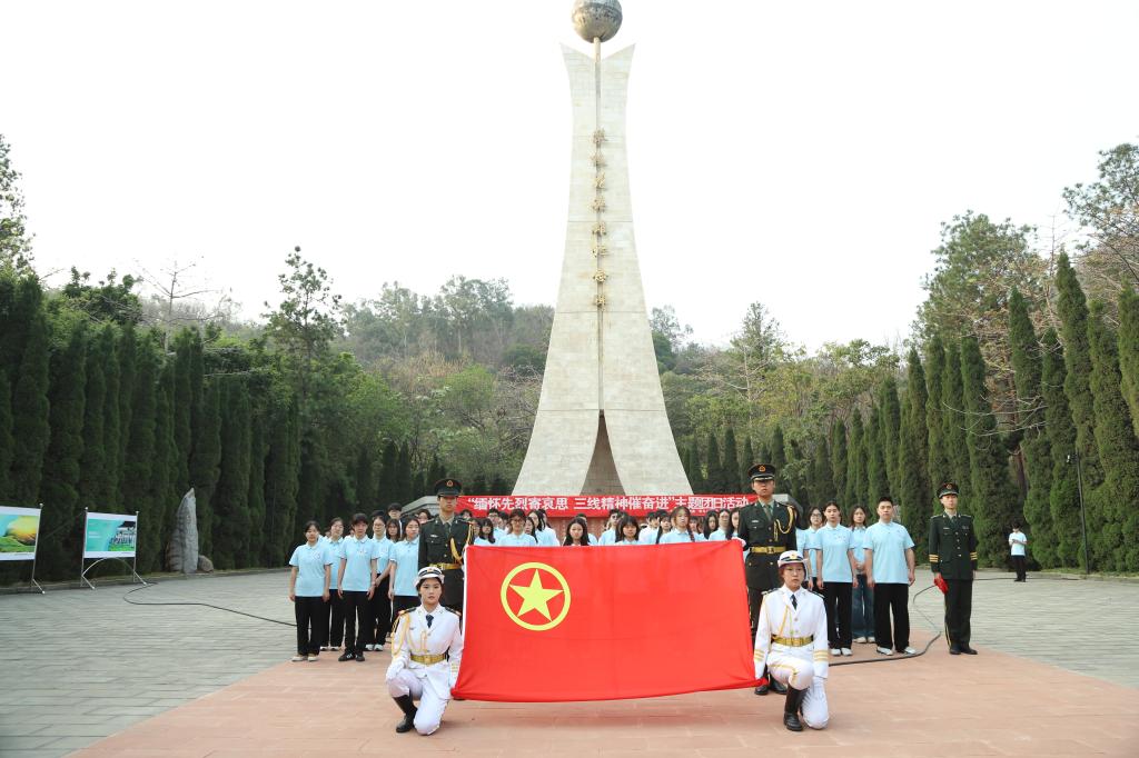 日丽风清,松柏凝琴。为缅怀三线建设革命先烈,厚植家国情怀,深入开展“党建带团建”工作,4月3日早上,机关第三党支部联合校团委组织开展“缅怀先烈寄哀思 三线精神催奋进”清明节祭奠活动。机关第三党支部全体党员、第五期“青马工程”班学员、团学组织学生骨干代表等100余人参加活动。