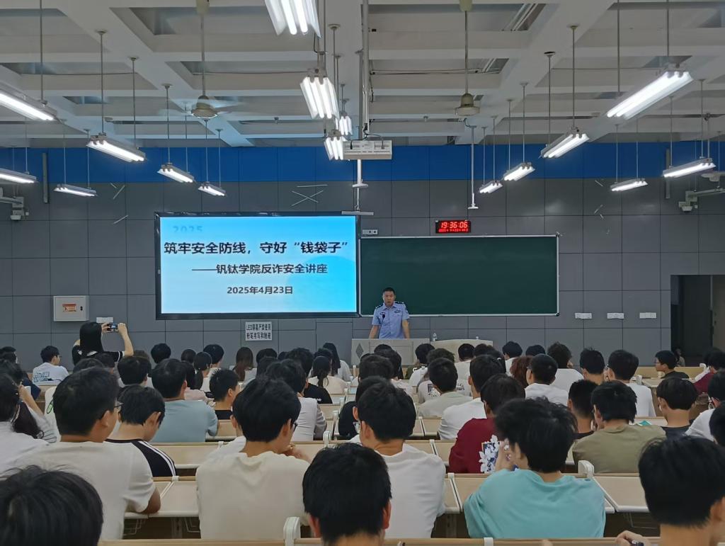 4月23日,钒钛学院在尚学楼114教室举办“筑牢安全防线,守好‘钱袋子’”反诈安全讲座,240余名学生参与,现场反响热烈。
