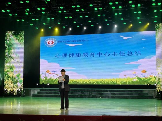 心理健康教育中心主任李玲老师从校内和校外两个层面对“5·25”期间开展的心理活动以及取得成果进行了总结。同时对积极和参与活动、积极支持心理健康教育工作的师生表示衷心感谢。
