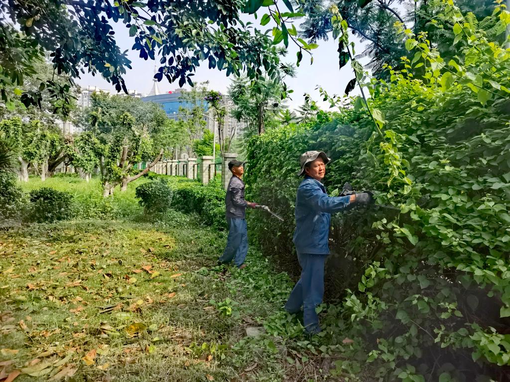 暑期,绿化工人们浇水灌溉、修剪整形、防治病虫害,精心呵护着一草一木,维持着校园的盎然绿意,为师生保留一片清凉静谧之地。环境卫生保洁工作科学调度、有序开展,确保人流高频区域常态化精细保洁与垃圾及时清运,全力守护暑期校园环境的整洁与卫生。他们的身影出现在晨曦微露时,忙碌于烈日当空下,坚守在夜幕降临后,用辛勤的劳动换来了校园始终如一的清新与美丽。