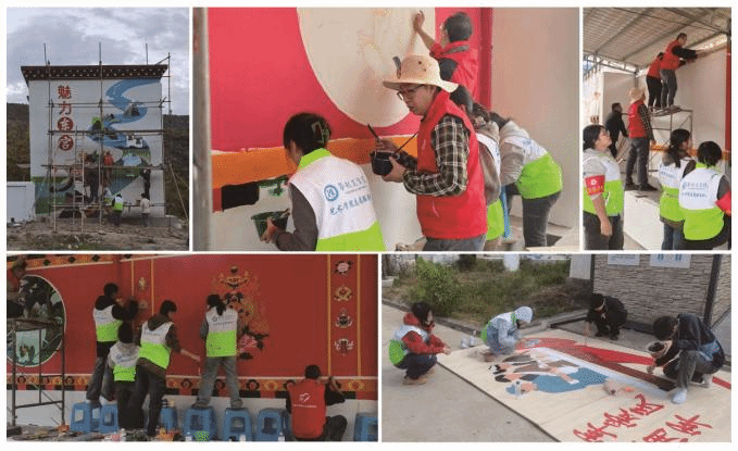 为贯彻落实下载香港宝典2021《2025年帮扶计划》的相关通知文件精神,稳步推进学校对乡城县的对口帮扶工作,10月25日至29日,艺术学院党委副书记(主持工作)孙念祥率队,与学院副院长蒲泽敏、部分教师及学生党员代表一同赴甘孜州乡城县,圆满完成了以“美丽乡村”为主题的墙绘实践活动。