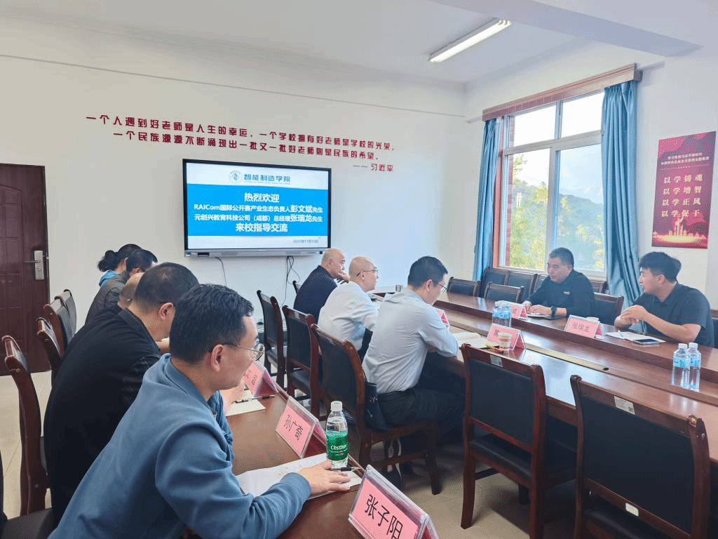11月10日,智能制造学院在学院第二会议室召开“以赛促教”专题研讨会。RAICom国际公开赛产业生态负责人彭文斌先生、元创兴教育科技公司(成都)总经理张瑞龙先生受邀来校作交流指导。学院副院长(主持工作)魏弦、教务处副处长陈尧、学院副院长周振出席会议,学院实践中心、教学科、教研室主任相关负责人参加会议。