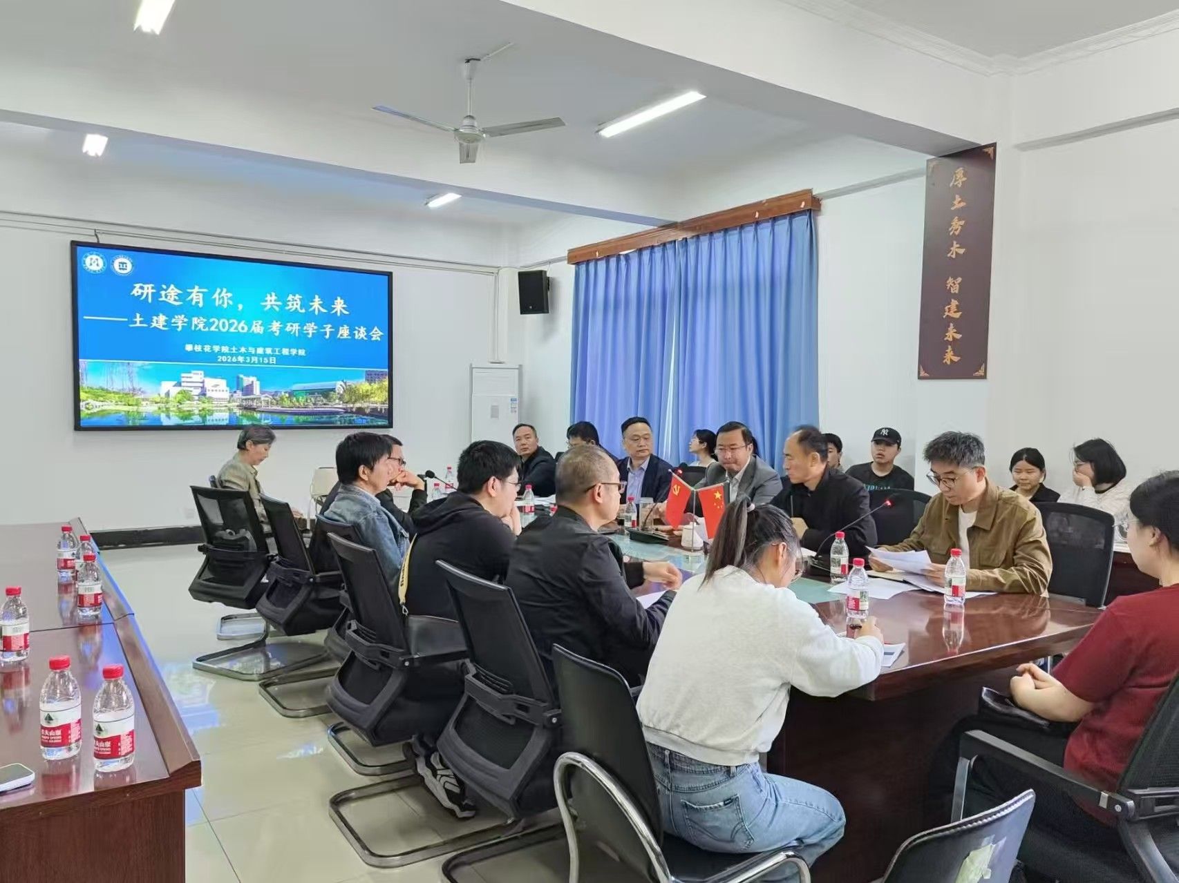 3月15日上午,土建学院在学院103会议室召开“研途有你,共筑未来”2026届考研复试指导交流座谈会。研究生处负责人、土建学院学院领导、硕士生导师及2026届考研通过国家初试线的学生参加会议。会议由学院院长孙金坤主持。