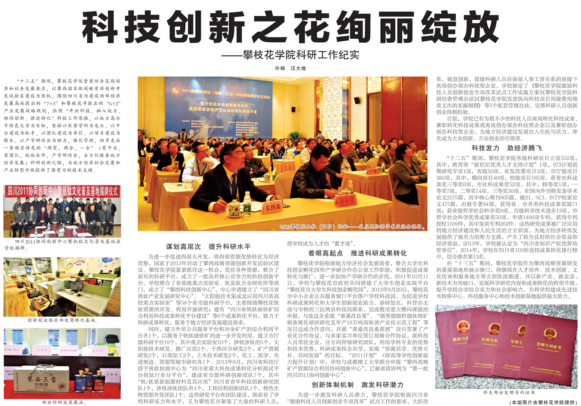 5月4日《攀枝花日报》报道了我校“十二五”期间科学研究工作成果,现将《攀枝花日报》报道内容全文转载如下。