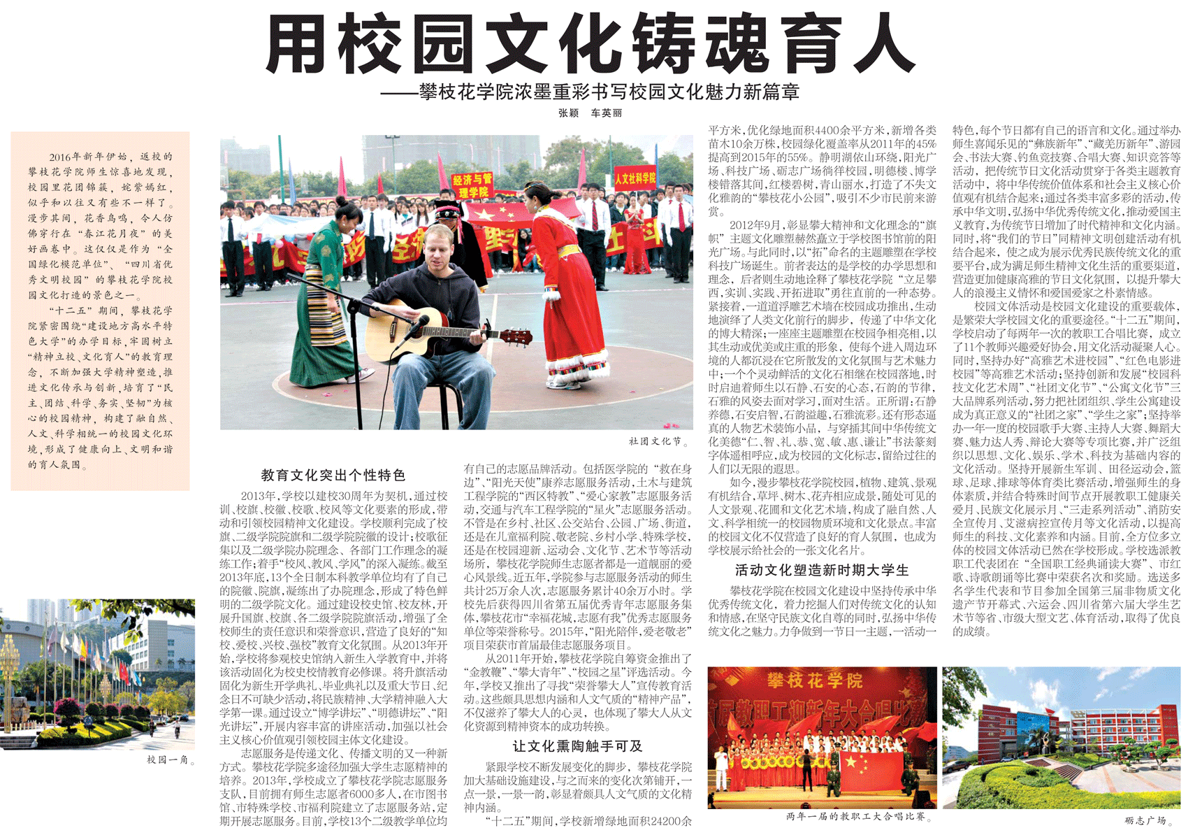 近日,《攀枝花日报》报道了我校“十二五”期间文化建设工作成果,现将《攀枝花日报》报道内容全文转载如下。